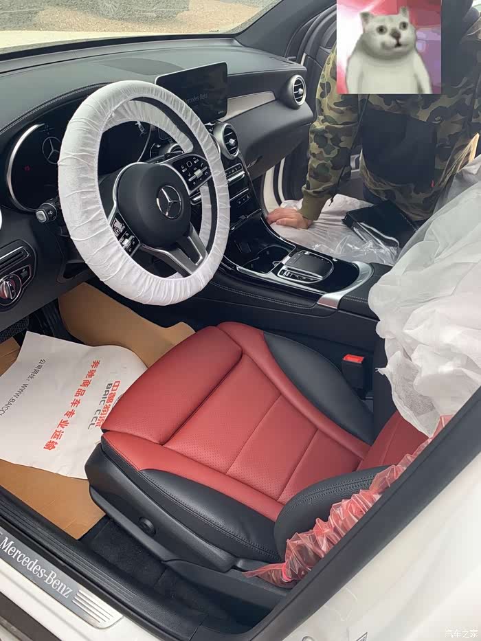 店里的一台外白内红的300动感,这个内饰我真的超级喜欢,可惜后来也征求了一下爸妈意见,都不让买红内饰,哎。而且搞笑的是交钱当天下楼,楼下停车场里有5台新款GLC(所以说北京GLC是真的多。。。),4台都是白色,一台是红的Coupe。