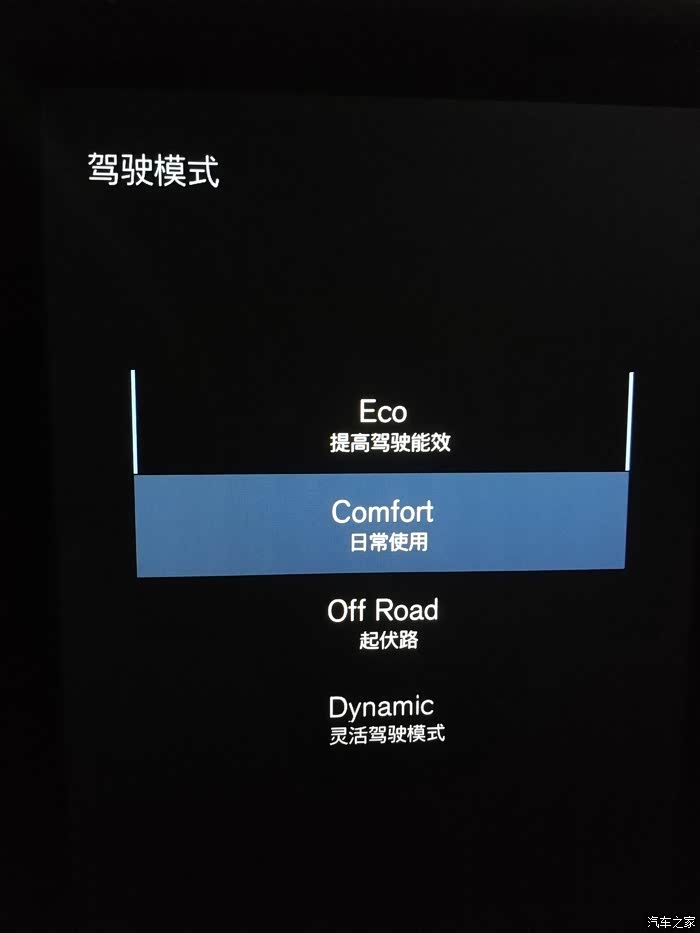 按下驾驶模式滚轮,调出驾驶模式选择菜单,共有节能,日常,越野,运动四个选项,其中在越野和运动模式下会出现发动机转速表,在节能模式下会出现eco量表,在日常模式没有东西。
