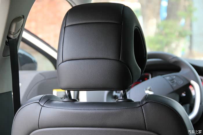 前排可调节头枕很舒服实用。