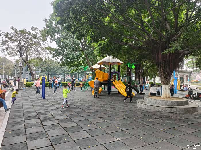 梦里水乡景区的小朋友的游乐设施和篮球场。