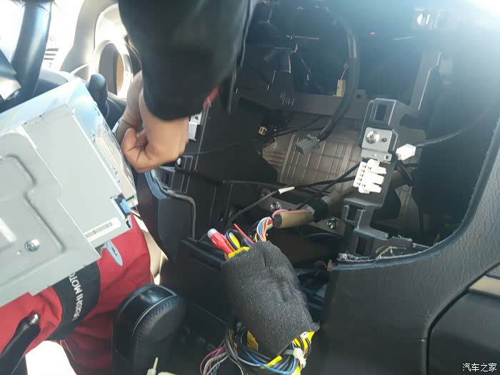 接好后再把插头包好,避免干扰和异响。这是第一次包的,没弄好,又拆了把白色插头包了进去。需要说明的是:原车gps天线接口能与这个机头完美对插,不用再进行单独走线。还有别忘了接usb延长线和顶上的小屏线。