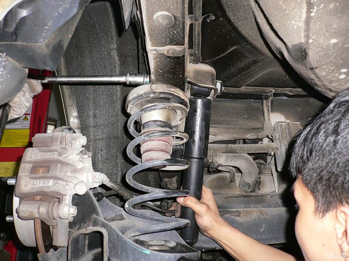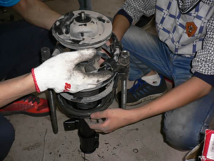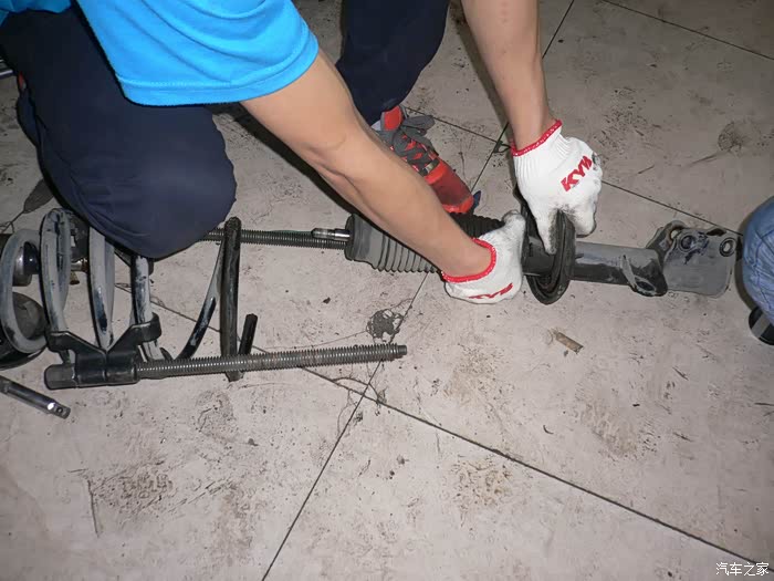 开始换新左前减震器。