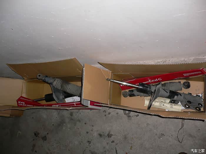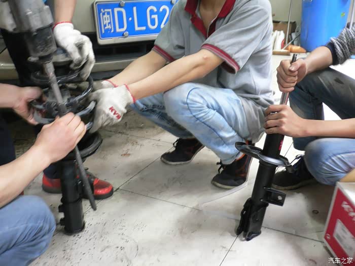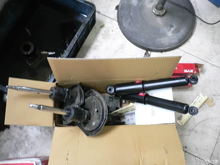 已经换下两只前面减震器,还有两只后面新的减震器。