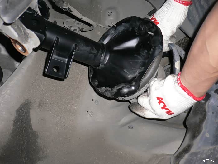左前新的KYB减震器装车。