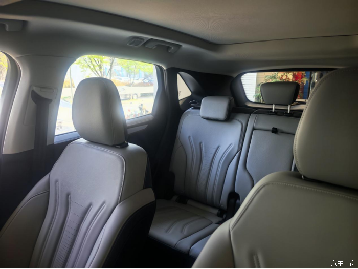 最后看的是昂科威PLUS,空间确实大,后排坐三个人都不挤,座椅软得像沙发,隔音也做得好,跑高速应该很舒服。