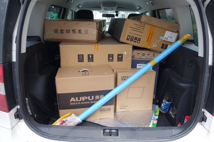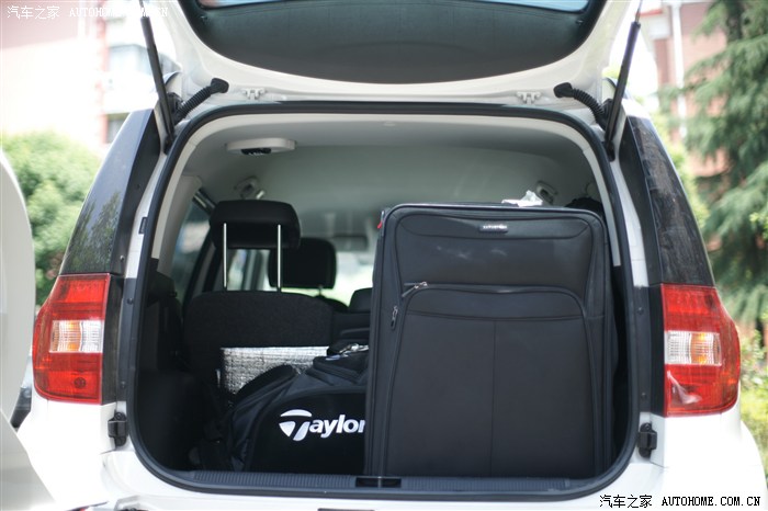 轻松放入一套高尔夫球杆和29吋拉杆箱。目测起码可以放入四个29吋箱子或四套高尔夫球杆。拆掉后排,足够放入一台冰箱。