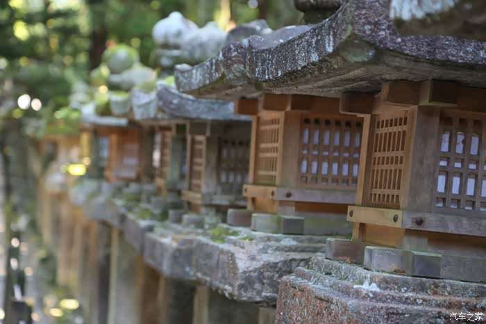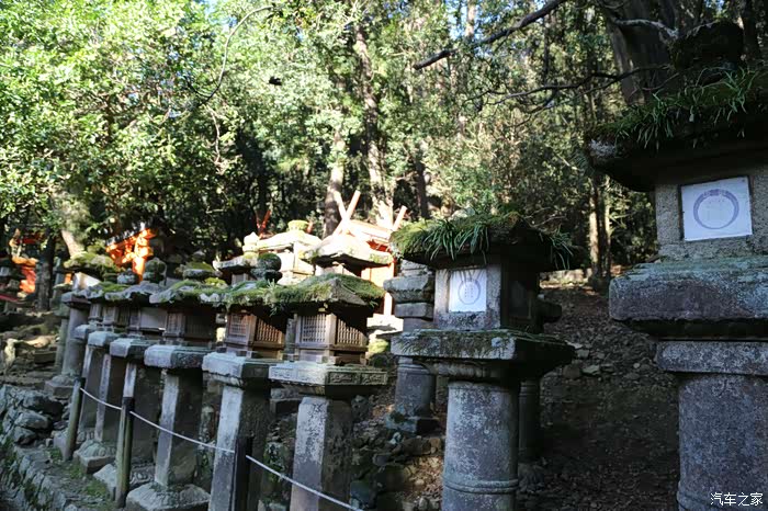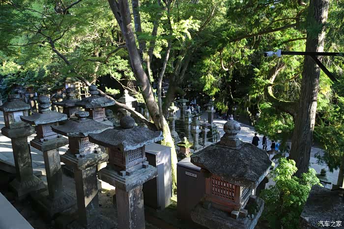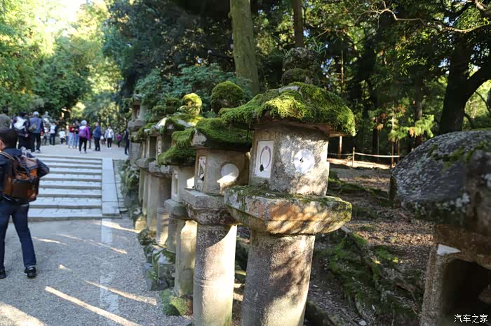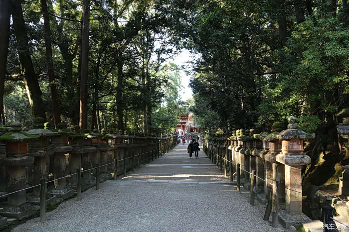 神道旁的石灯和参天大树是春日大社的又一道风景。