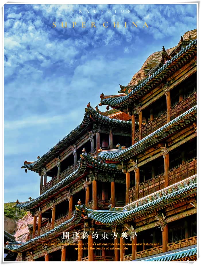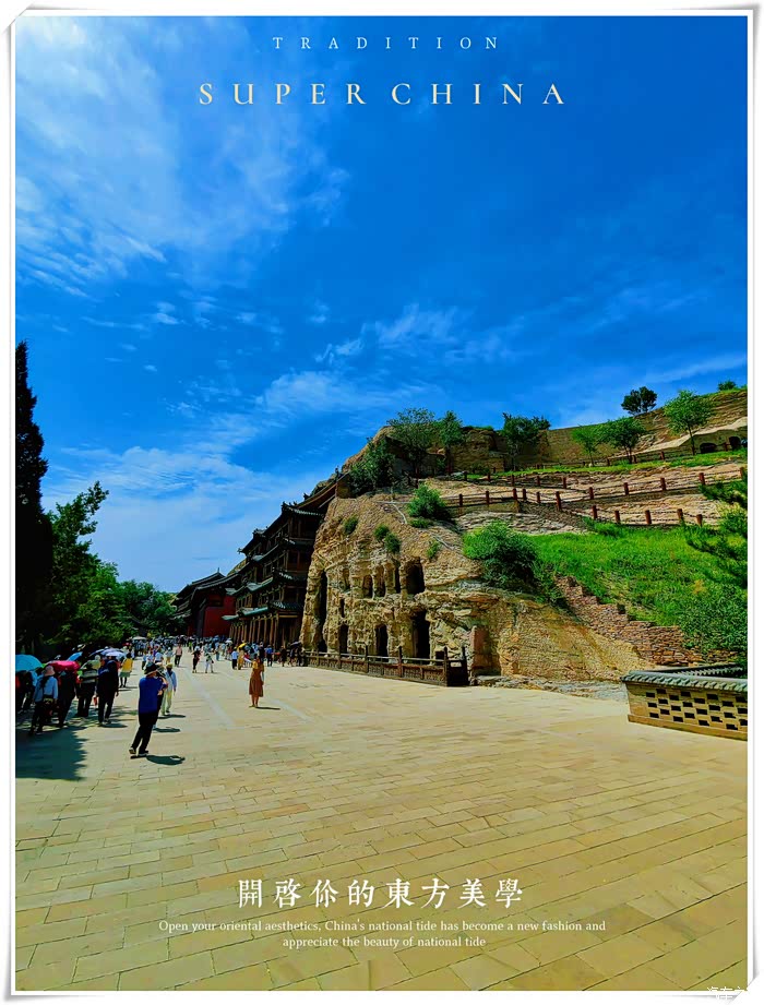 这石窟古建筑与蓝天白云的搭配看着特别美!