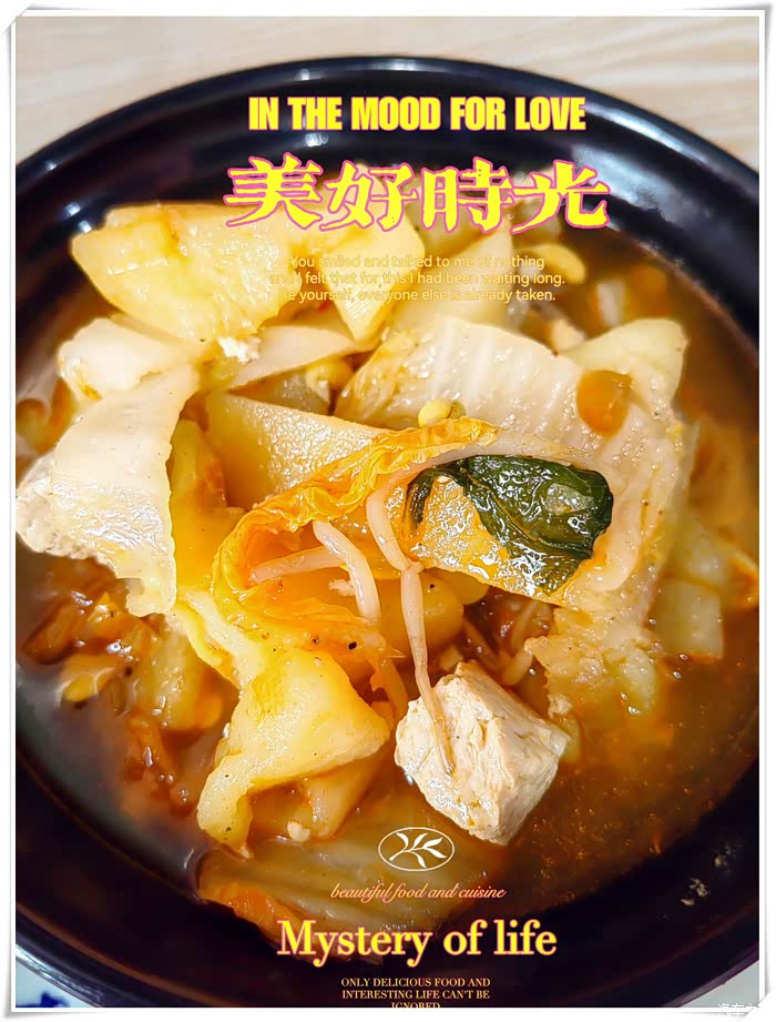 土豆、白菜、豆芽、豆腐炖在一块!素菜就着“黄糕”也能如此美味!