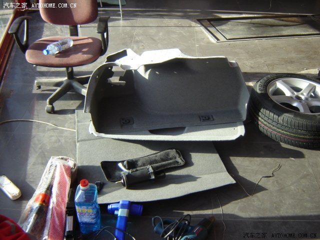 看到很多车友改装自己的爱车,我当然也不例外,但我最关心的还是JJ的隔音,因为有车友反映JJ的噪音比较大,在经过一番调查和了解后,我决定动手了.用的材料是德国威锐的.采用的是 德国汗高的技术,减震板用的是丁基橡胶. 好了,开始工作,第一步,先做后备箱. JJ的后备箱隔音虽然有,但是太少了,只有几块减振板,贴在车体的共振点上.也起些作用,但用处不大.所以要在这里多下工夫. 先拆后备箱,把里面的东西拿出来