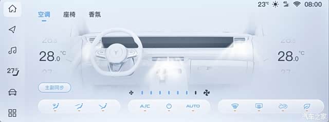 空调、座椅、香氛功能合并,从Dock栏空调入口均可快捷访问。
