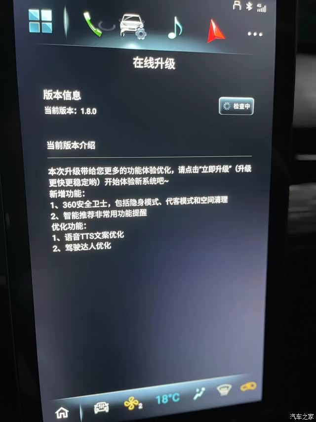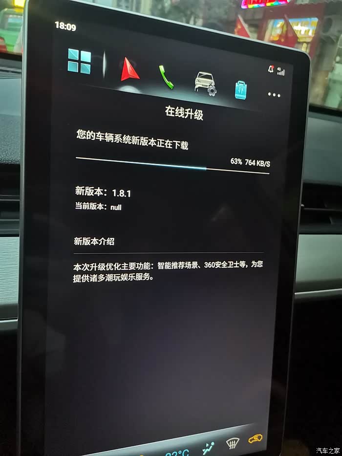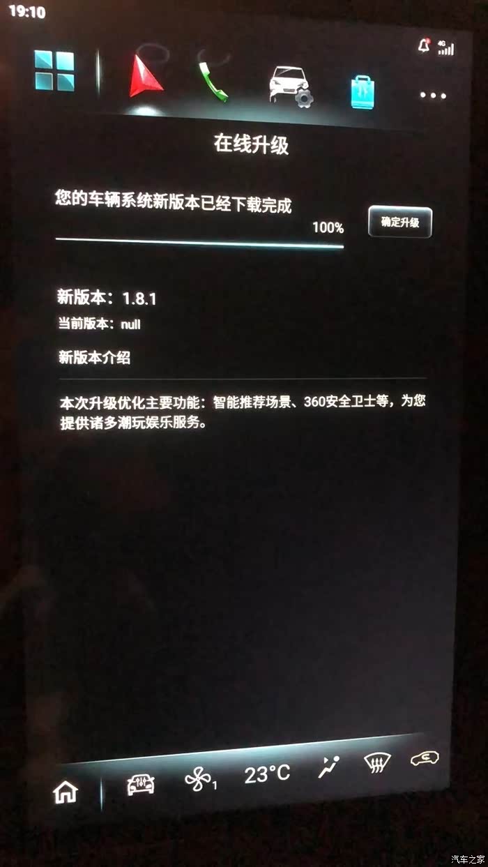 在哪里看有没有OTA升级呢?当有OTA🔧推送时,车机↗?会👀有一个🔔,表示有🆕的消息。