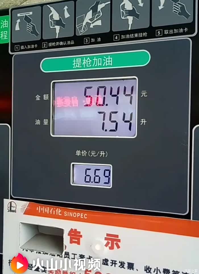 下高速加油到跳枪,耗掉7.54升92号汽油。满格油还能加进7.54升。有点奇怪。