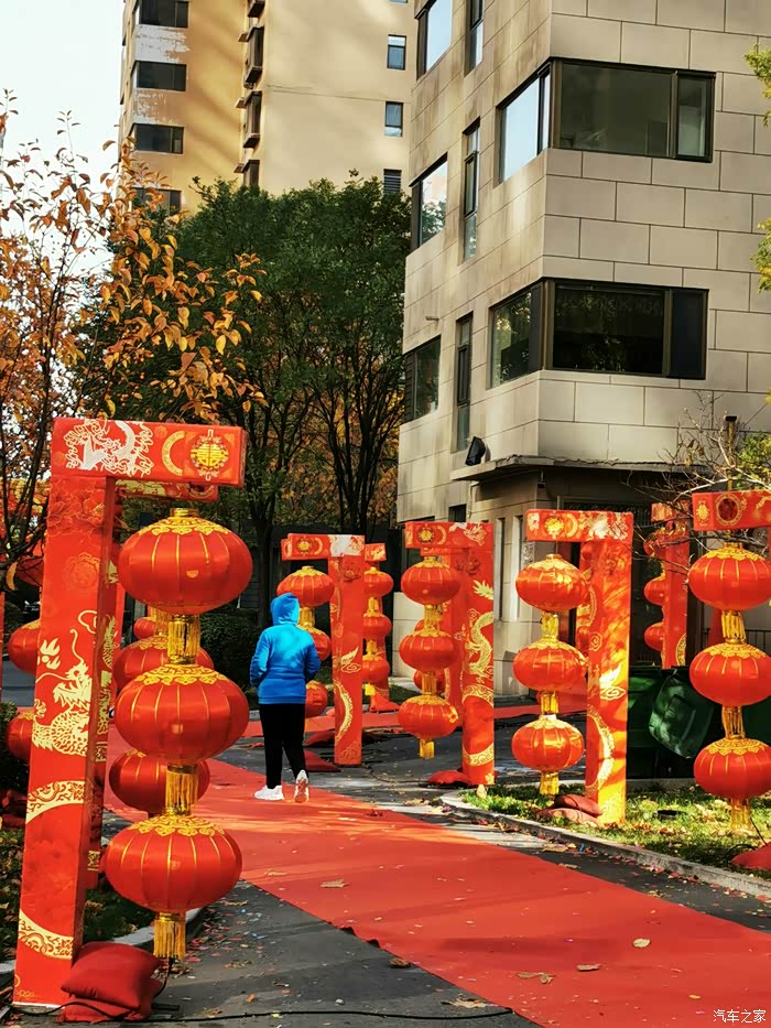 今天我们小区一邻居给孩子办喜事,大门口布置了两排大红灯笼,看起来非常的喜庆啊!祝福新人喜结连理,百年和好!