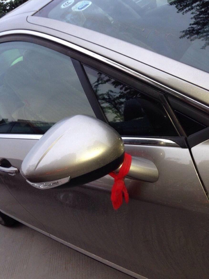 后视镜上集成了转向提示灯。红绳过上牌后再取掉