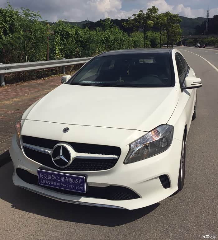 话说买车前,目标是两厢的小车,想着小点方便停车,之前一直在考虑大众的POLO,斯柯达的晶锐,还有名爵3之类的,但Y先生考虑到我的驾驶水平和安全性,最后一咬牙下了血本给俺选了这款奔驰A180,自动档中的傻瓜式,用4S店小哥的话说,只要分清油门刹车握好方向盘就可以了。于是比较了东莞厚街,南城,塘厦几个4S店的价格之后,果断的选了长安溢华奔驰4S店,相比价格和赠品是最优惠的。那问题来了,到店看车的时候,Y先生一直在关心发动机,油耗,轮胎啥的,我就在纠结应该选白色呢还是红色呢?白色耐看低调大众化,以后想换车会比较方便;但我一直梦想着有一辆红色跑车,够炫(虽然某些人说那是村姑红)、、、、、、最后因为红色交期说要半年之久,没办法就不再犹豫的选择了白色,5月中旬付的款,7月底提的车。我只想说,等了好久终于等到今天~~