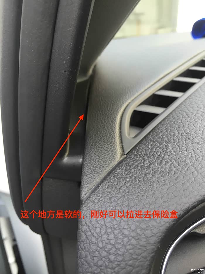 这个地方是软的,这个缝拉下去之后就刚好到保险盒。