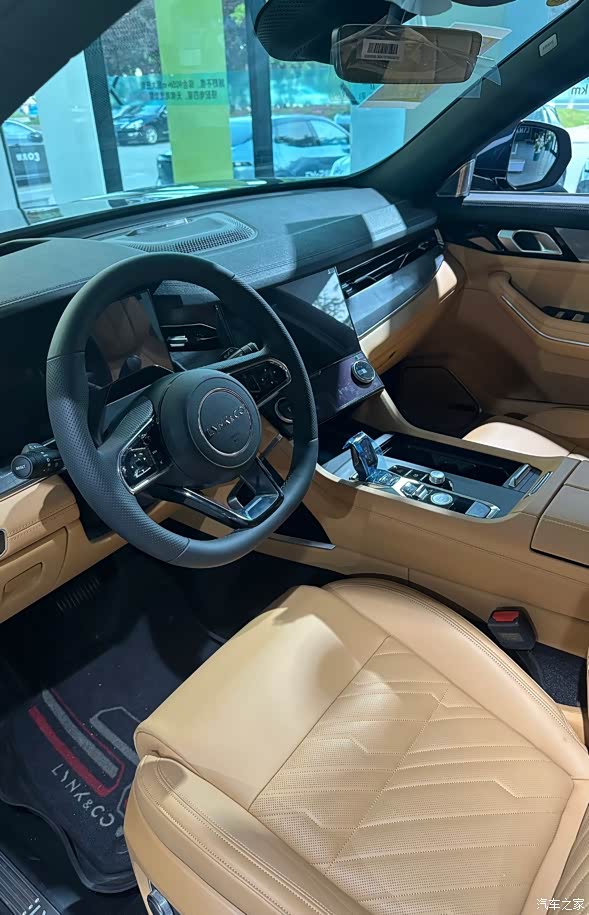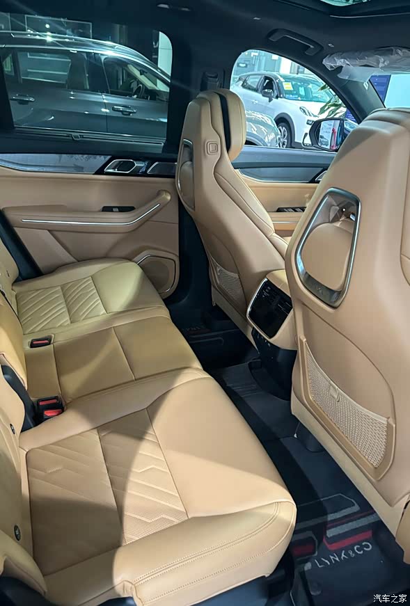 4.选领克09的第四个理由,座舱舒适,空调独立控制,座椅和内饰用料很足。座椅材质Nappa真皮,古典棕色高级感满满。它给我最大的感触就是填充很实在,支撑性很棒,但是相应的,对喜欢软座,软沙发的朋友来说,就有点偏硬了。但是经常开车的人应该都知道,太软的座椅,长途驾驶并不舒服,反而支撑性强的座椅更不易腰部臀部疲劳。