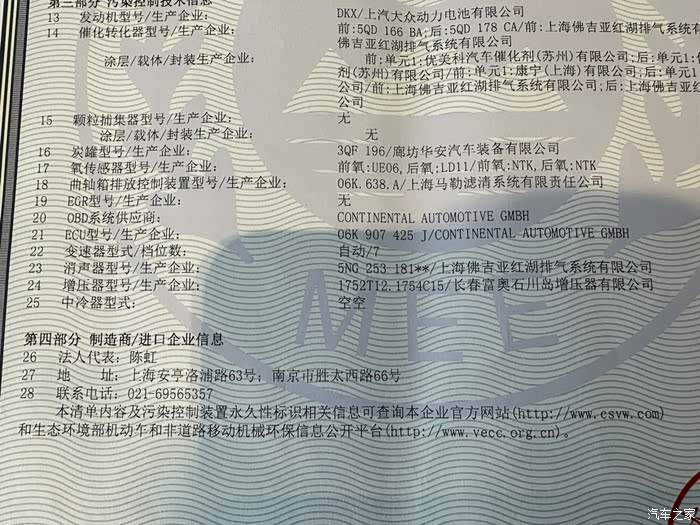 趁着上牌之前拿着环保证书看了一眼,确认没有安装。