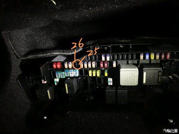 首先将驾驶座调到最前,进入后排打开驾驶座底下保险丝盒,此时车辆熄火下25 26号保险丝,这两个是远程网络模块保险丝,20分钟以后插上,启动车辆4G就恢复了。