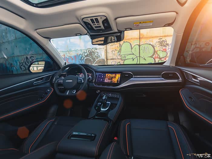 有趣的是,哈弗F7的氛围灯透过内饰面板的透光膜发光