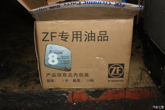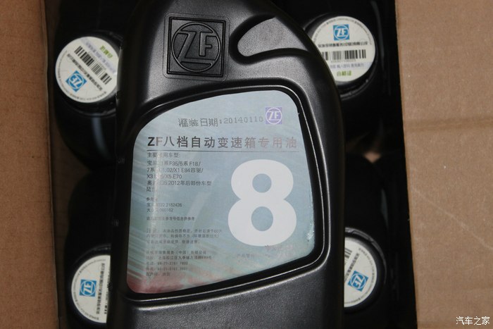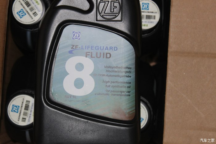 首先让我们来看看物料:包括6瓶1L装的ZF八速专用变速箱油、1个ZF原厂油底壳/滤芯。