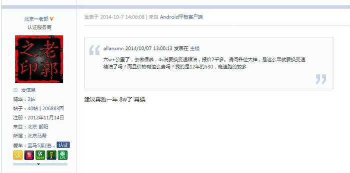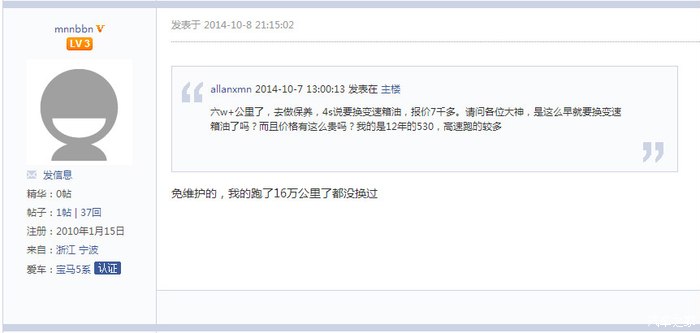 如果有童鞋对于自动变速箱(不仅仅局限于宝马,其他奥迪奔驰大众丰田任何品牌都可以)有任何疑问,都可以直接PM我,我将竭尽全力、有问必答!