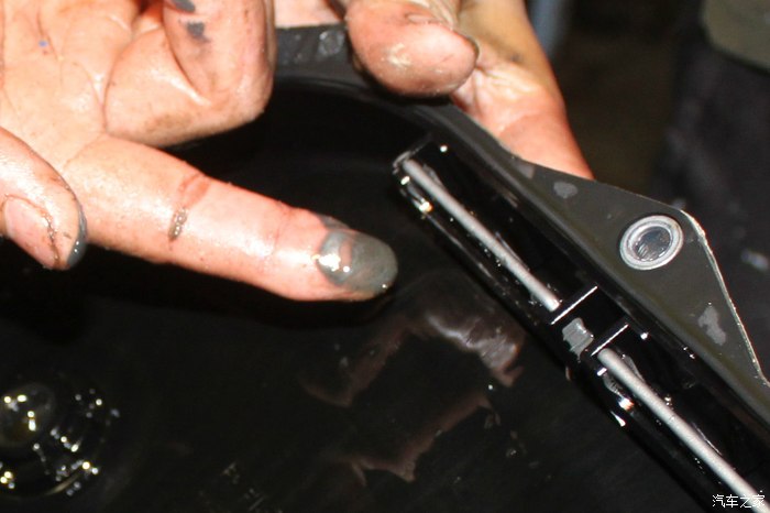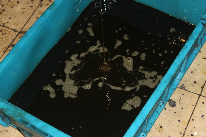 拆下放油螺丝,记得不要溅自己一身油,因为那油真的有点脏,而且不是看起来脏那么简单。