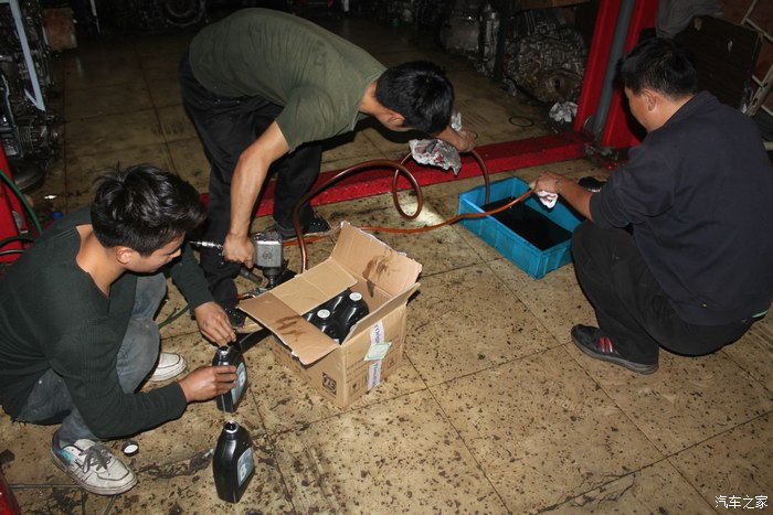 说起来真悲剧,我是当天最后一个轮到换变速箱油和油底壳的,只见那时天色已晚,初现阑珊。不过客户优先是原则,我就只能殿后了。