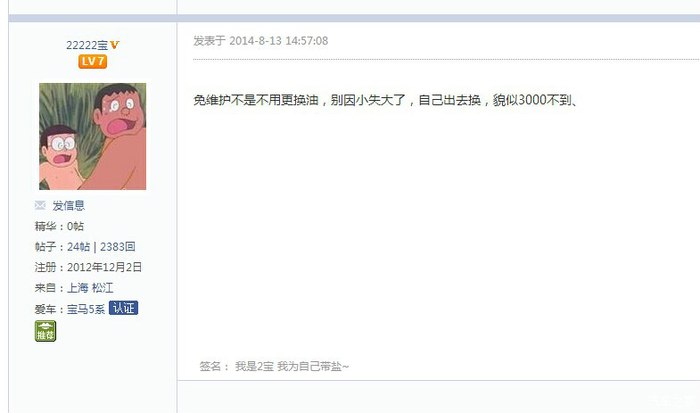至于ZF/宝马为何推出“免维护”这样的承诺,真的已经超出了葫芦娃的想象范围了,欢迎大家讨论