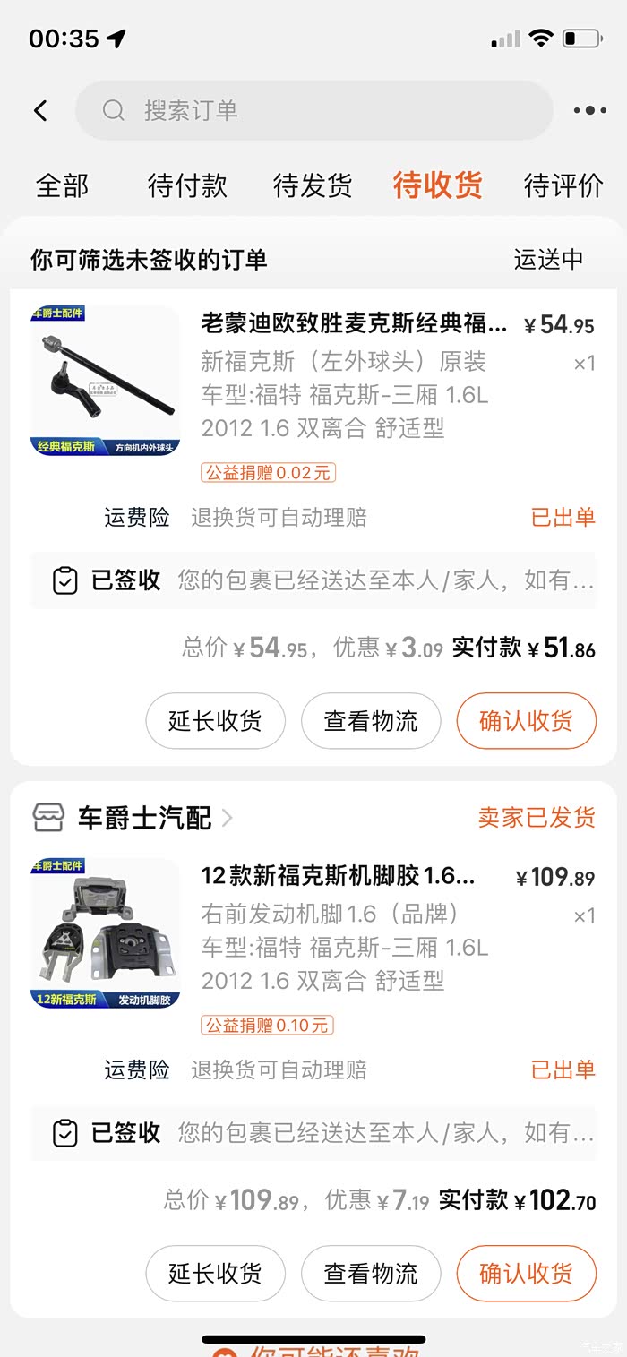 淘宝买配件回来,自己动手更换,机脚胶-109块钱,方向机球头-51块钱,