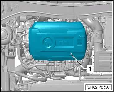 向上小心地将发动机罩盖-1-依次从四个固定销拔出,切勿猛地将发动机罩盖拔出,亦不能只拔一边。