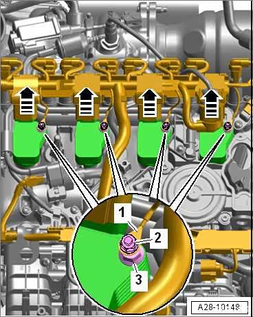– 将搭铁线-1-拔出,旋出用以固定点火线圈的带六角螺母的螺