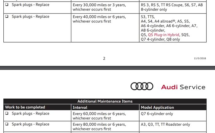 但是根据大众国外的保养周期和NGK官方的建议,这个双铂金火花塞远不止2万公里的水平,看看下图美国和欧洲市场的火花塞更换周期(同款EA888)