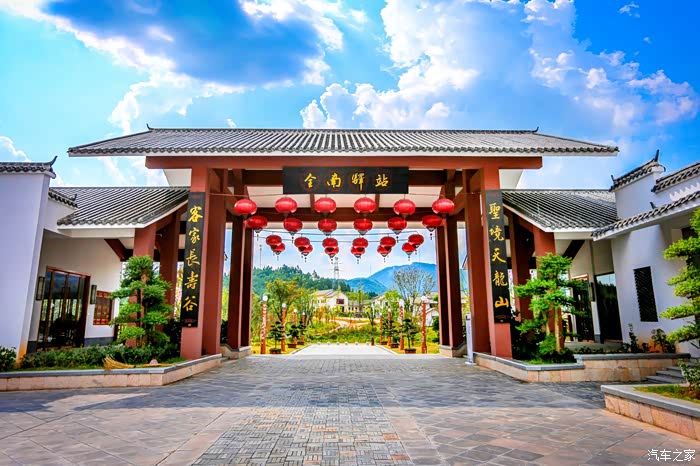 来到天龙山景区门前,高塔上的“天龙山”三个字,是那么的苍劲有力。再往前走,来到了“圣境天龙山,客家长寿谷”的牌坊前,穿过这座牌坊,似乎就进入了圣境。