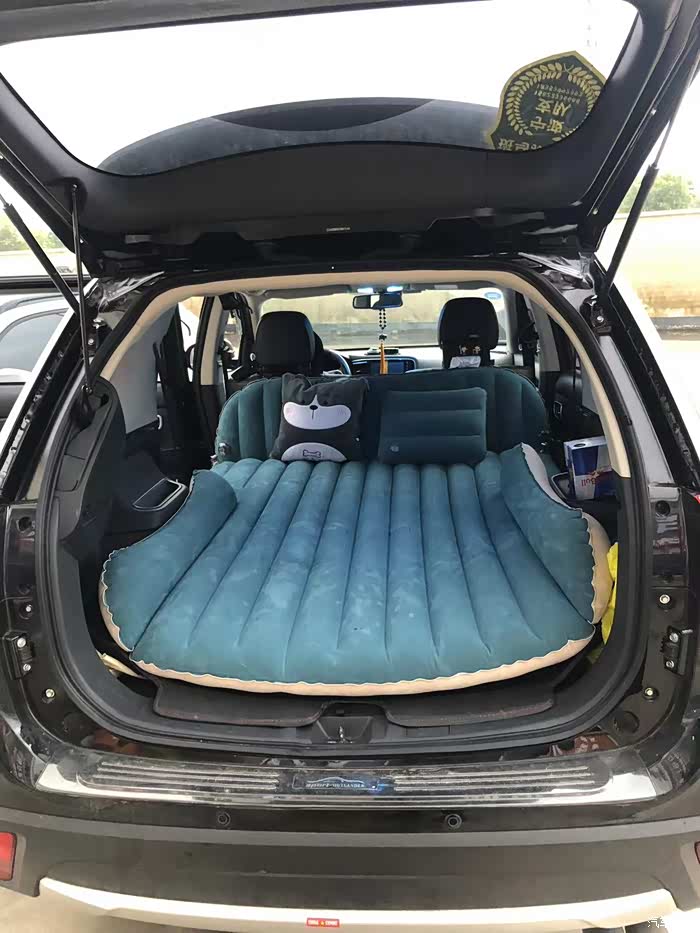 然后方便周边露营,小孩子可以躺着,就弄了气垫床