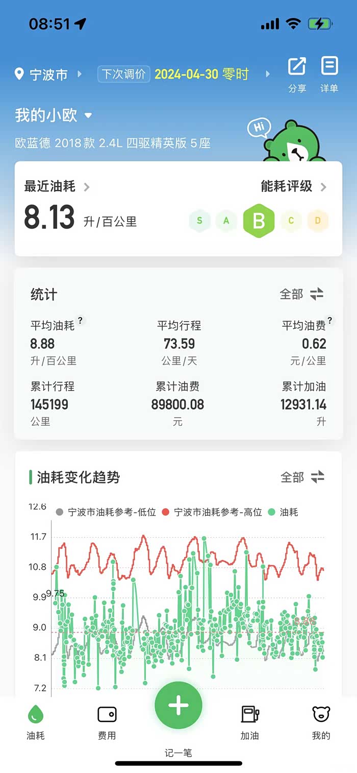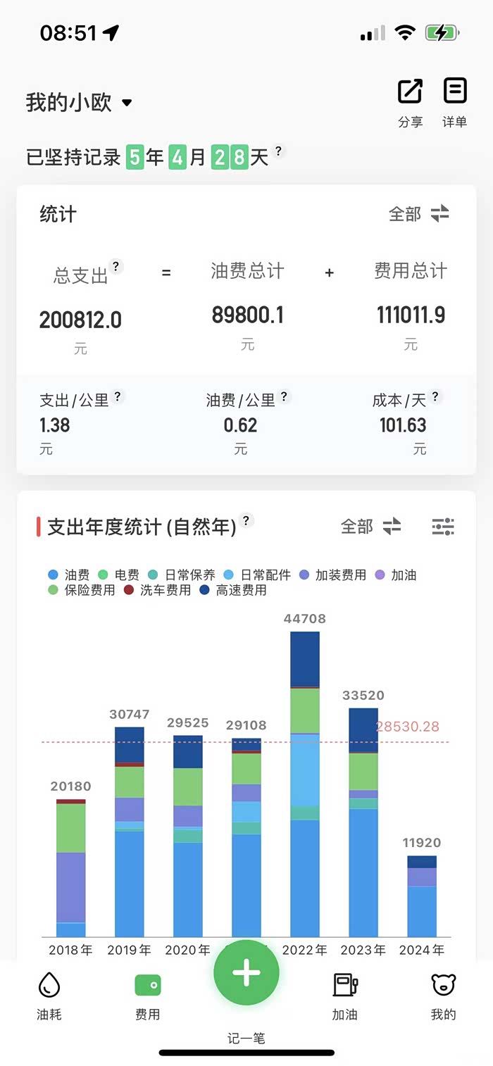 我有个习惯就对欧蓝德产生的费用记账【油费、高速费、改装费、保养费、保险费】。现在产生的费用可以入手一辆坦克300了哈。