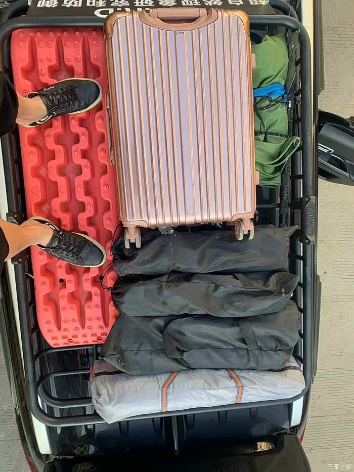 装了4年的行李架光荣退役,因为外出下雨的时候行李架不方便,然后入手了500L的行李箱。放的东西不多,但是不淋雨了,平常就把露营的桌椅、气垫床放上面。方便点。高度也不影响下地下车库