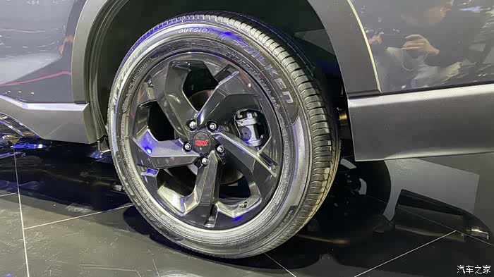 这个18寸的熏黑轮毂,款式还是比较帅气的
