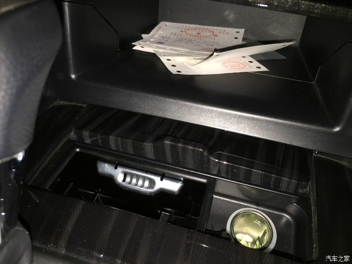 点烟器和手扶箱,我不吸烟,所以点烟器这盖门我基本不打开,手扶箱位置刚刚好而且很大可以托着右手肘,而且里面的空间也比较大