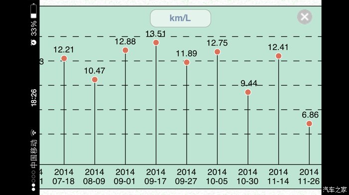 第次的加油我都会手软件记录下来,夏天开空调比较多