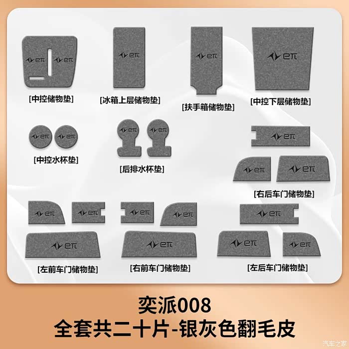 中控台和扶手箱护垫贴完,就把各种收纳箱和置物台的护垫放好,这个不用贴,一放就可以。