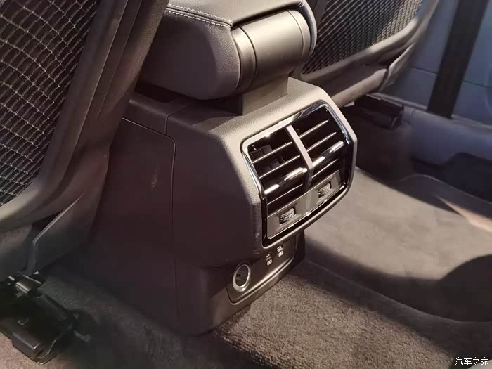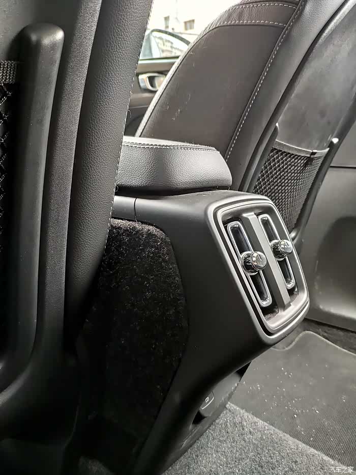 XC40的后排空调出风口圆形金属的设计比起Q3的传统设计更具科技感。重点是,XC40车内真的是一点都没有味道!