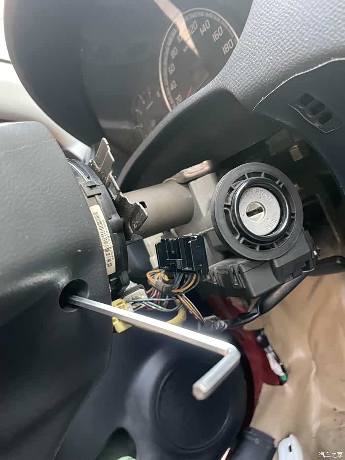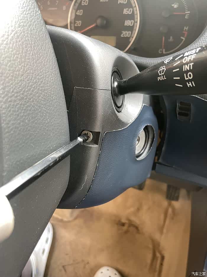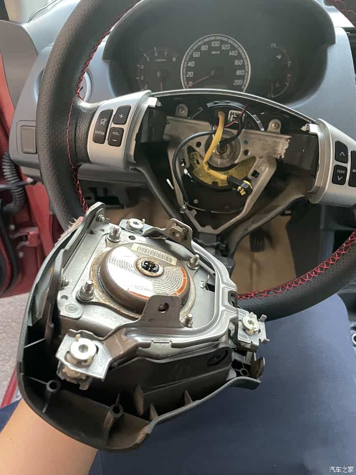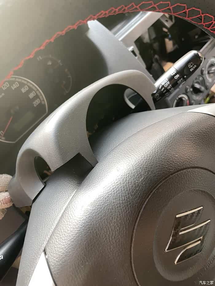 警告,警告,警告,能不拆转向柱就别拆,后期后悔呀,没弄对就各种问题,比如方向盘按不正了,气囊游丝也可能故障灯,反正我都遇到了,自己调整了好几次都没弄正,不是向左偏15度就是向右偏15度,头大,哎!气囊灯也成功点亮了,估计游丝连线坏了,没弄好却修理出新故障,新手不易,网上介绍的操作方法:做记号,也没说具体怎么弄,所以也不太靠谱呀。自己修理不了得去专业汽修店做定位调整方向盘了,又得破财了。既然拆了,就说下我认为的拆卸步骤吧,下面的两颗螺丝,上面还有两颗,螺丝上有标记,关键是雨燕的螺丝是13号的,我的14号大12号小,害得我还得去五金店买了13号扳手,店铺老板说一般都是偶数,比如14号18号,13号奇数不太常用,结果燕子用上了。