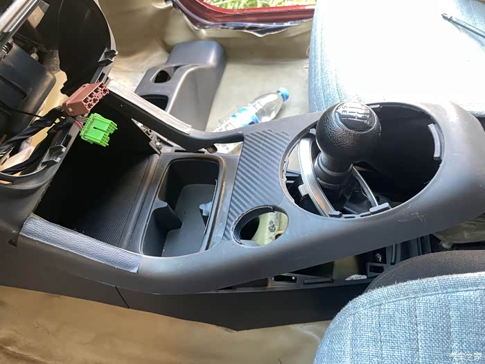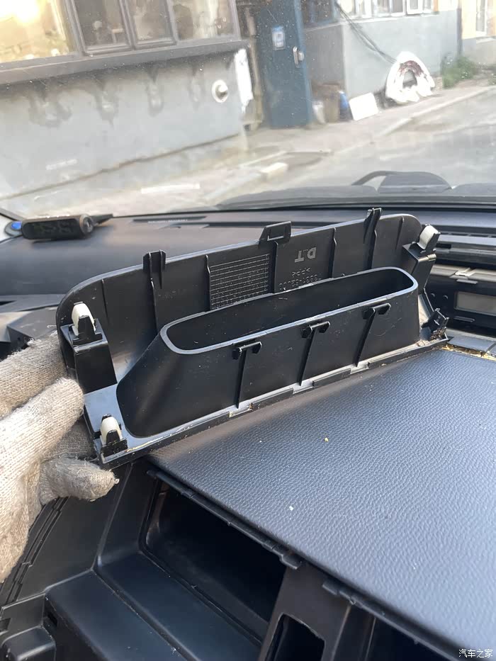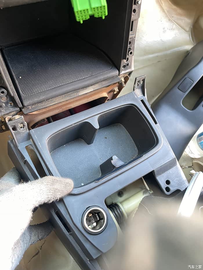 就开始往外吧,对了,点烟器位置有线束连接,翻过来给它拔掉,面板就下来了,所有脏的地方,后期我都擦拭清洗了,顺便搞卫生了。