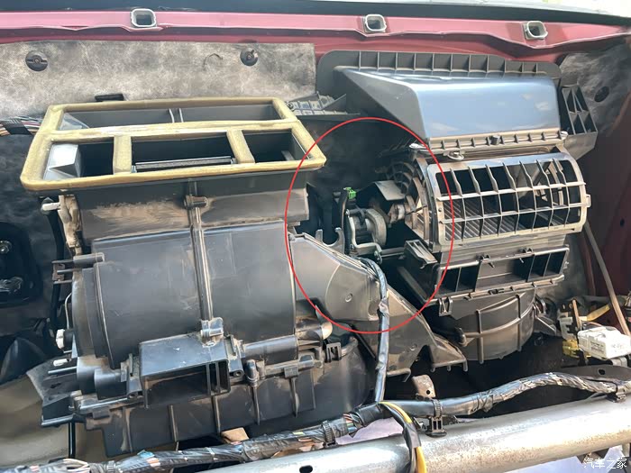 这可空调总成上的螺丝不用拆,我拆了,后来又安装上了,因为我拆下总成拿屋里顺便清洗总成了。