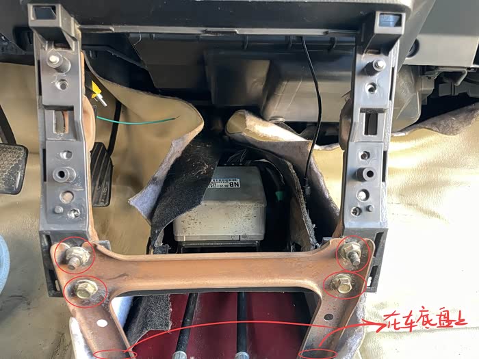 连接在车底地板上的螺丝,左右各一颗,之后就能取下支架了……看下图