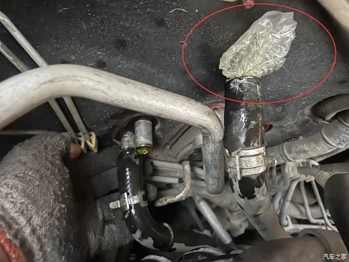 小水箱管路拔下来的时候,会有部分防冻液流出,用干净的东西快速堵住,最后不至于所有防冻液都浪费掉。安装更换完,直接补充一些就好。像汽修厂,直接都给你放掉。浪费。