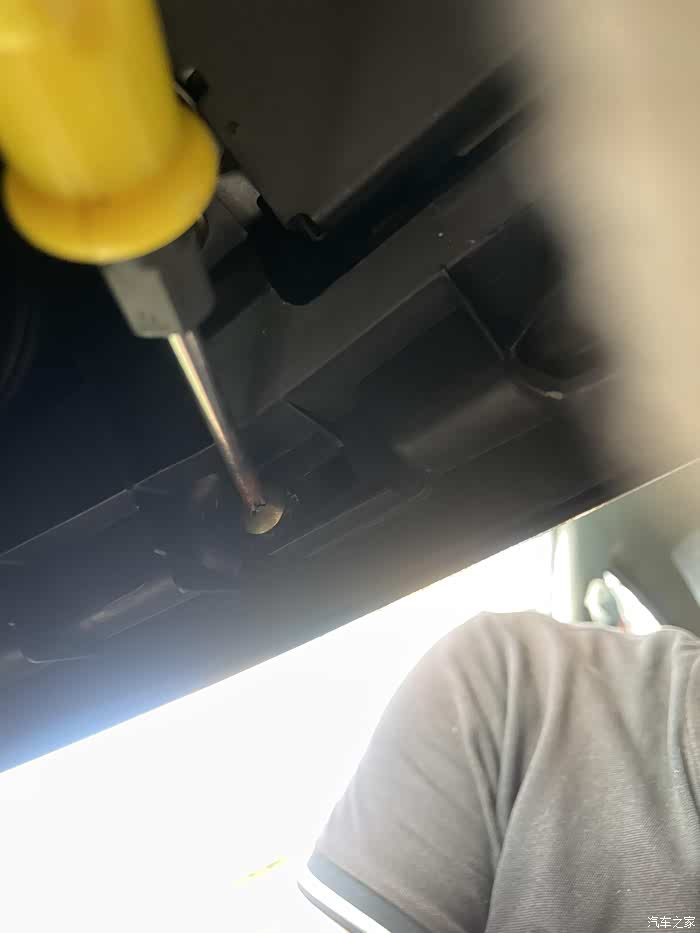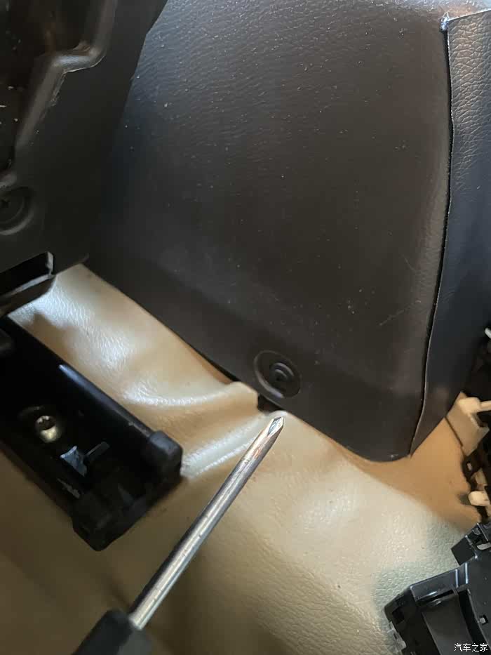 头翻到手套箱底部往上看,挨着车门侧有一颗螺丝拧掉,挨着多媒体那侧还有一颗,看下面图