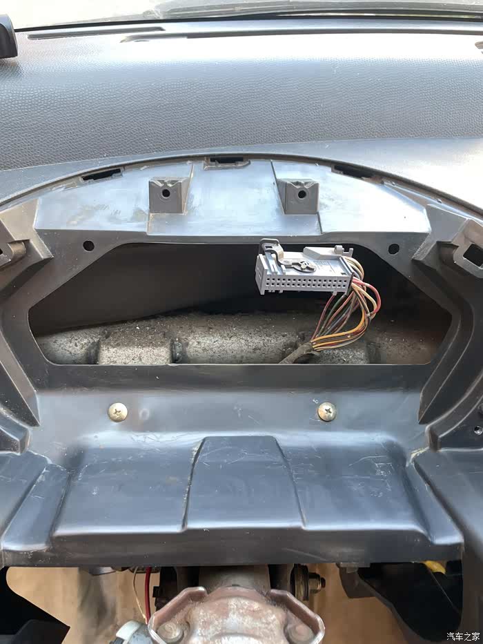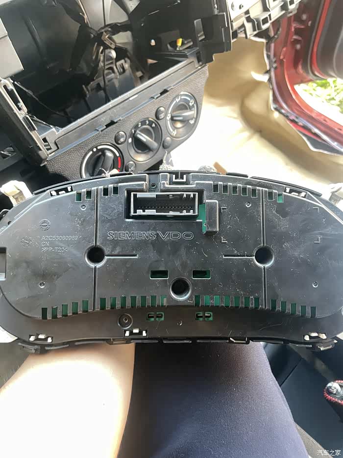 拆仪表前,外面有个壳子,因为忘记拍照了,描述一下,很简单,基本外一圈都是卡扣,很紧实,就注意挨着主驾车门那里有个雾灯面板插线,在背面,要拔除掉,慢慢就整体扣下来了,就露出这个图片中仪表真容……能看到仪表底部左右各有一颗螺丝,拧掉放盒。